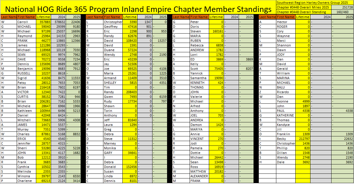 Inland Empire H.O.G. Member Mileage Tracking